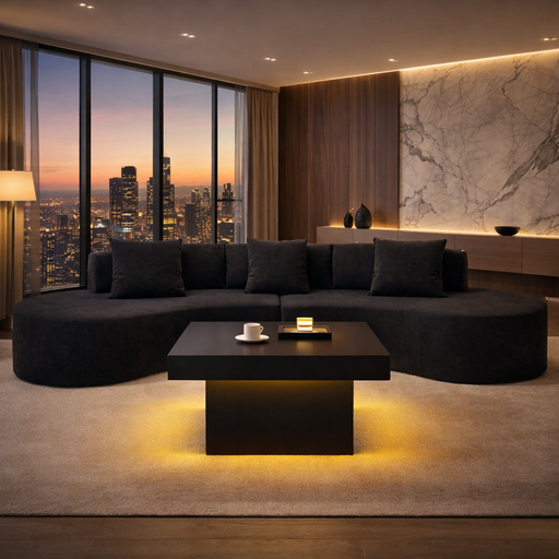 View full detailsOverviewThis 2-piece living room bundle includes an oversized curved sectional sofa and a matching LED coffee table. Designed for larger sea...