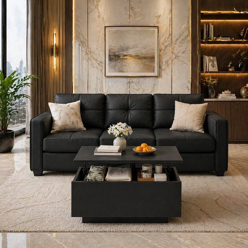 View full detailsOverviewThis coordinated living room set includes one 88-inch black faux leather sofa and one lift top square coffee table with hidden storage....