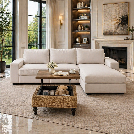 View full detailsOverviewThis coordinated living room bundle includes a reversible L-shaped sectional sofa and a 47-inch coffee table designed for compact homes, ap...