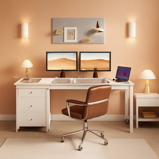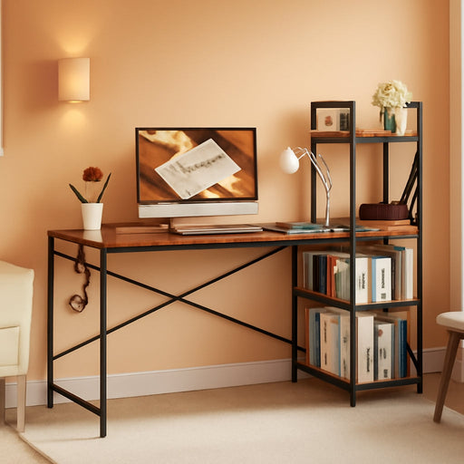 View full detailsElevate your workspace with a spacious rustic-industrial computer desk that blends rugged charm with smart organization. Designed for focus and pr...