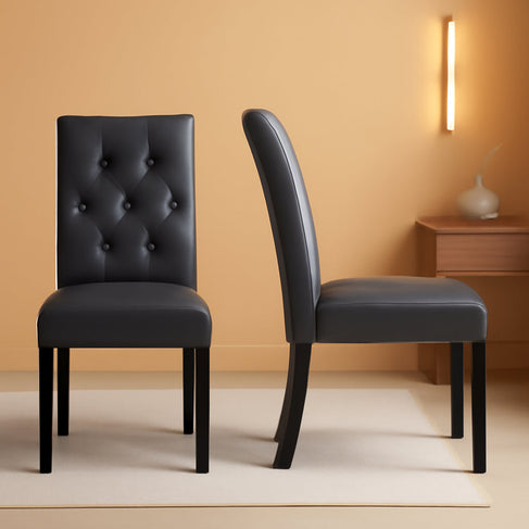 View full detailsElevate your dining space with the Habit Solid Wood Tufted Parsons Dining Chair set in Tan—an elegant blend of durability, comfort, and timeless d...