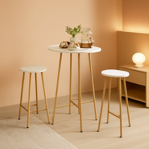 Transform a small space into a stylish, welcoming dining spot with the Gold Round Bistro Set—compact, durable, and irresistibly modern. This 3-pie...