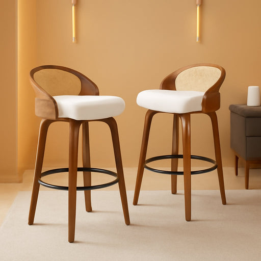 Ver todos los detallesElevate your space with a 2-pack of 26-inch swivel counter-height bar stools that blends retro elegance with modern comfort. Perfect for kitchen i...