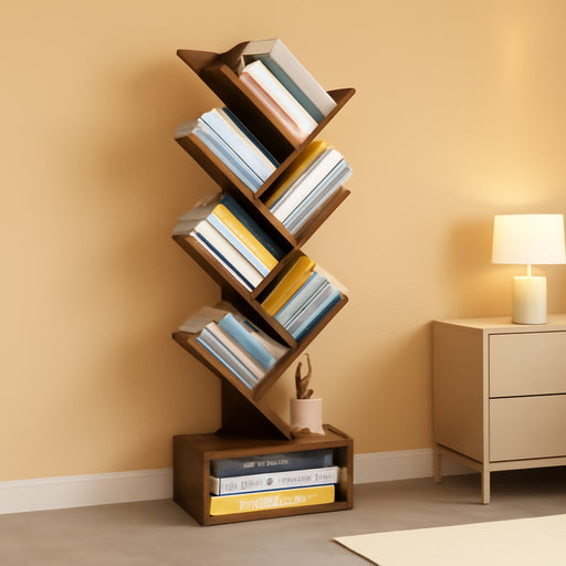 Ver todos los detallesTurn tight corners into a stunning storage statement with the 10-Tier Tree Bookshelf—a floor-standing brown wood bookcase that combines generous s...
