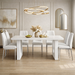 71" Modern White Dining Table with 6 PU Leather Chairs Dining Set