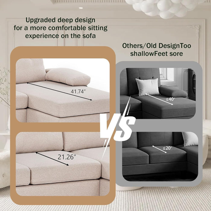 The large and wide chaises, measuring 41.74" in length and 30.32" in width, allow you to stretch out and relax fully. This sofa not only enhances your living space but also provides superior comfort, making it an essential addition to your home decor.