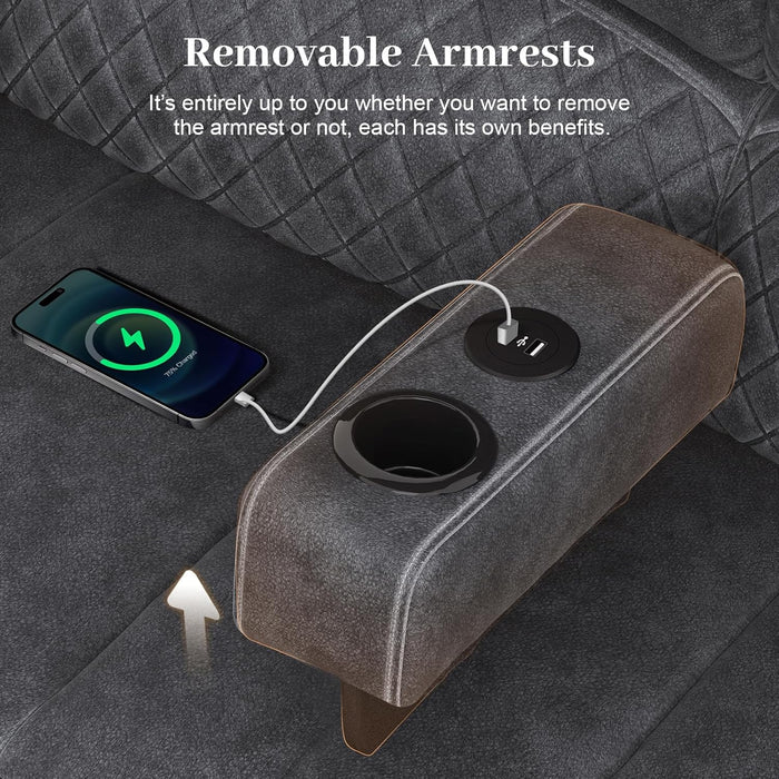 - Hidden storage in armrests: zipper-access compartments plus a flip-open armrest to accommodate taller items like wine bottles.