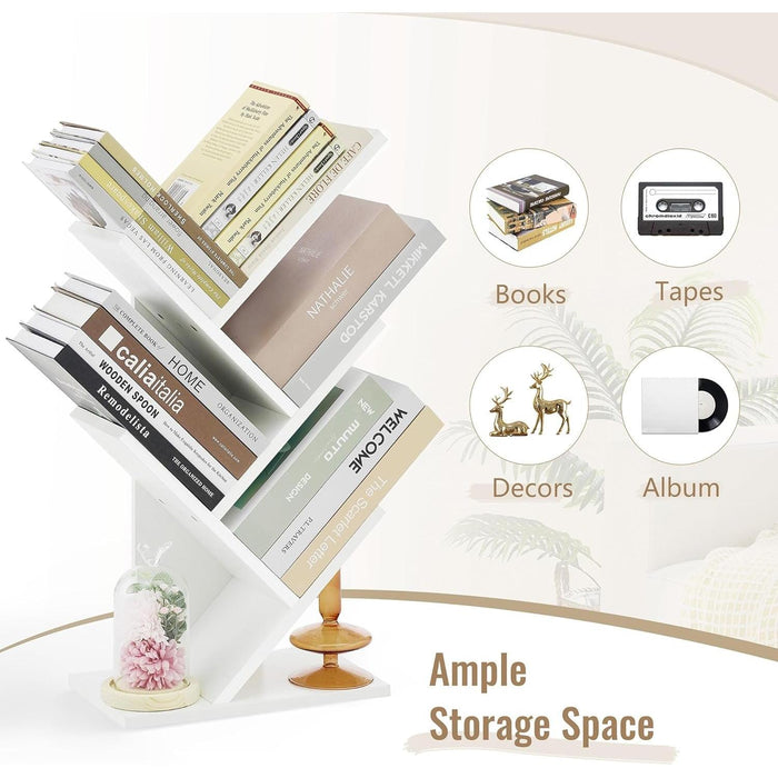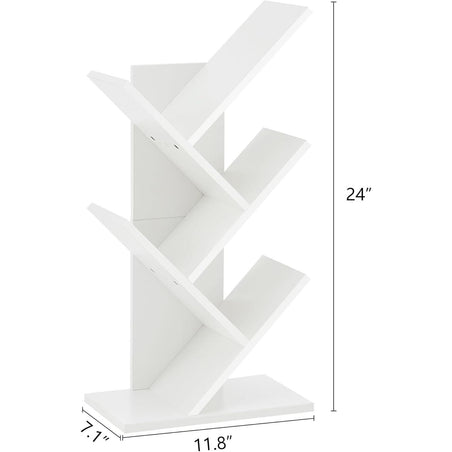 White 4 Tier Tree Bookshelf Free Standing Small Bookcase