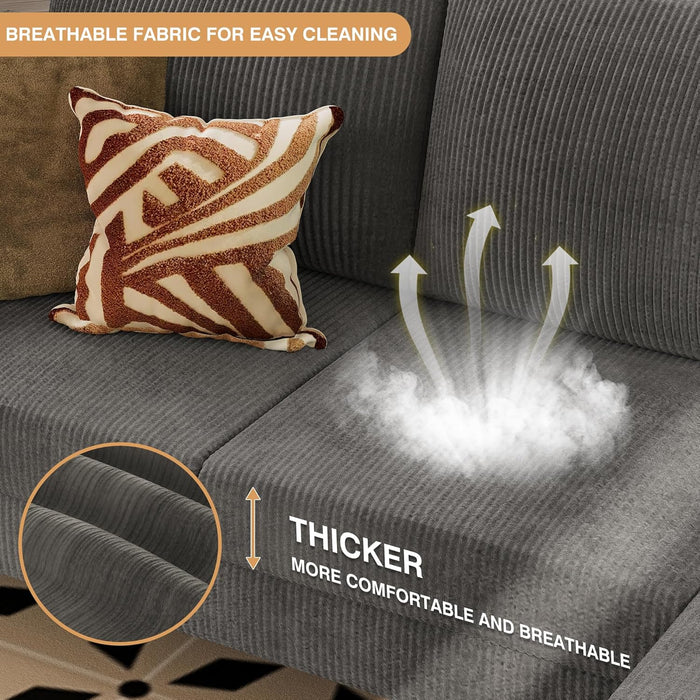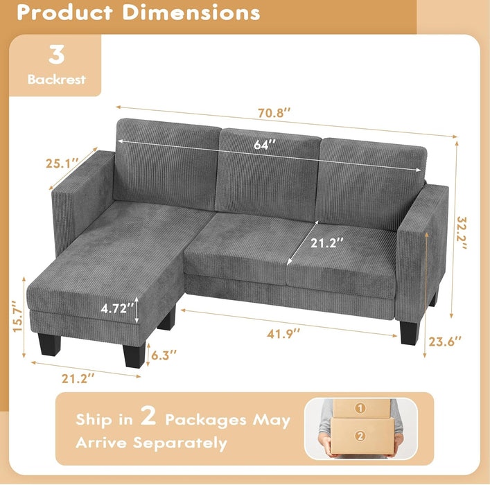 Transform your small space with a convertible sectional that blends comfort, style, and flexibility. This 3-seat L-shaped sofa in gray corduroy fabric is designed for living rooms, apartments, and offices where every inch counts.
