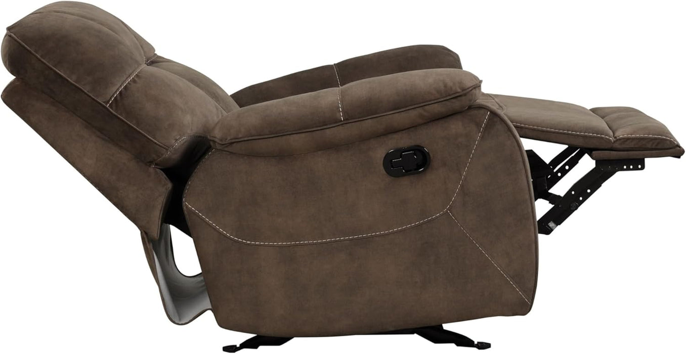 Designed for modern homes, this pair features deep bucket seats, a chaise-style footrest, and a simple latch-release mechanism for effortless manual reclining. The Shadow Brown upholstery combines velvety softness with easy-care durability, all wrapped around a sturdy foam-wrapped hardwood frame.