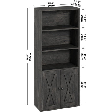 Designed to fit with modern homes, it stands 59.4" tall, 23.6" wide, and 11.8" deep, providing ample room for books, décor, and everyday essentials without overwhelming your space. The charcoal gray finish adds a versatile, timeless look that complements a variety of decor styles.