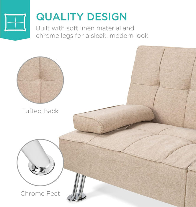 Maximize space with sophisticated comfort — the Linen Modern Folding Futon is a beige, tufted linen sofa bed that adapts to your day, from relaxed lounging to a guest-ready bed in seconds.