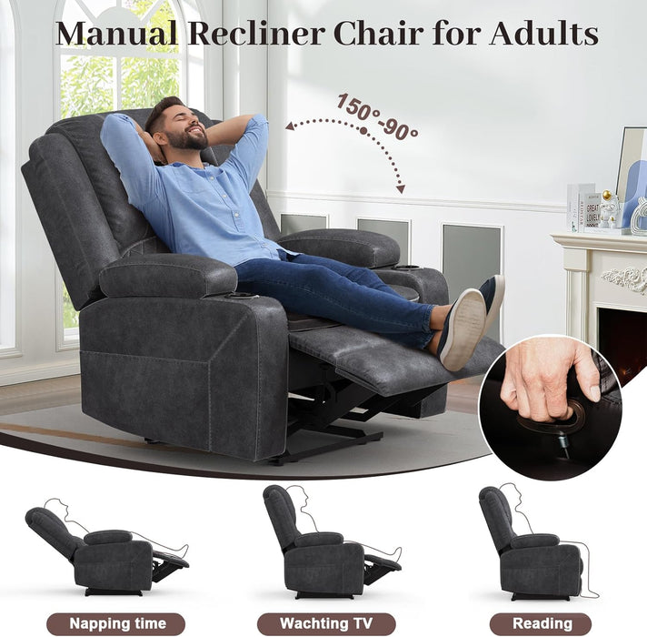 - Manual Pull-Tab Recline: Simple, durable reclining with multiple positions for ultimate lounging.