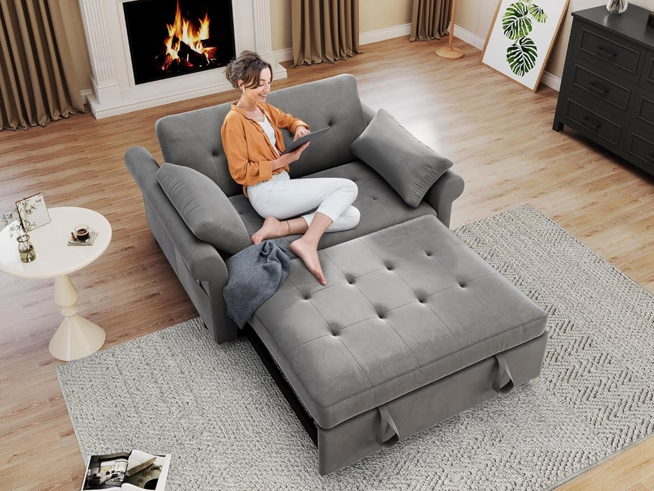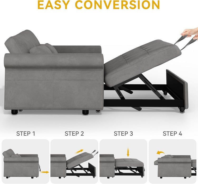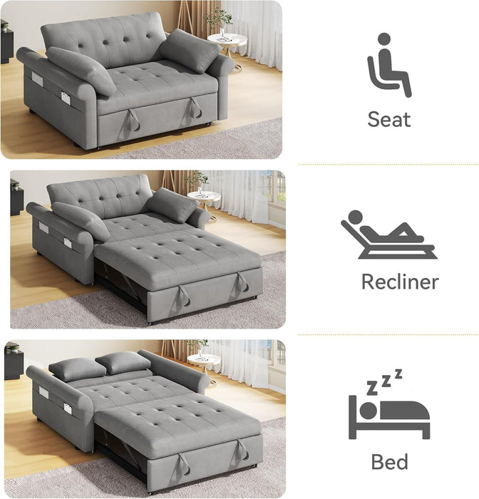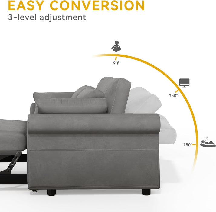 - 3-in-1 Convertible Design: Transforms from a sofa to a pullout bed and a full bed.