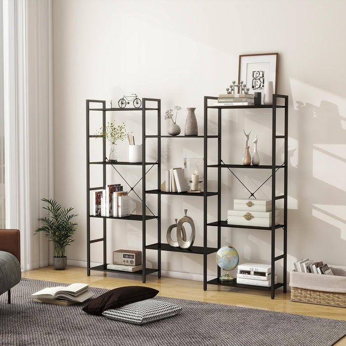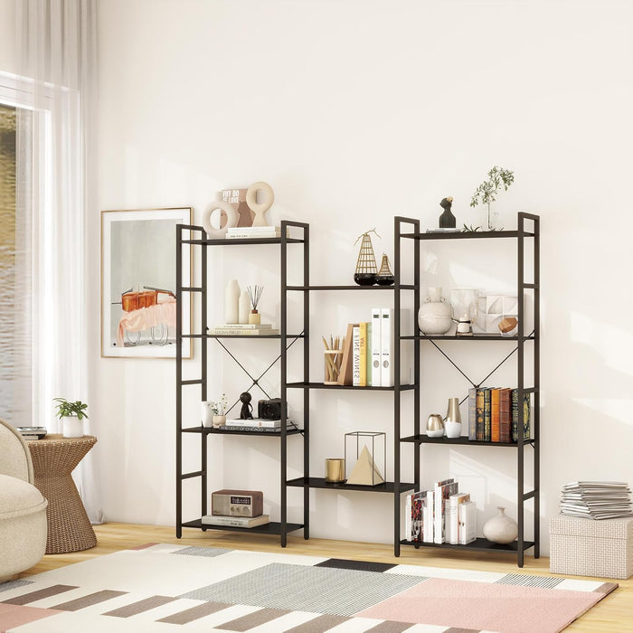 Industrial 4 Tier Bookshelf Black Living Room Home Office