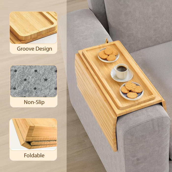 Foldable Wooden Sofa Arm Tray for Drinks and Snacks