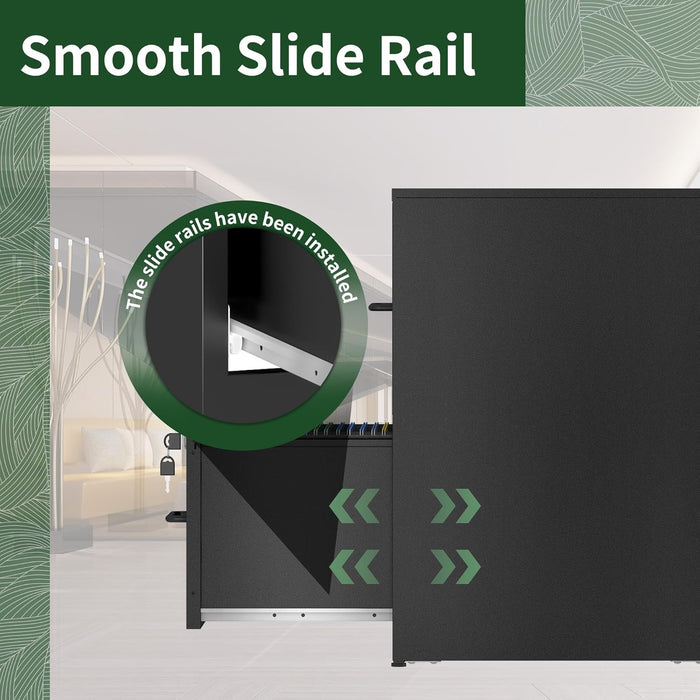 Two Drawer Locking Steel File Cabinet for Home Office Vertical Letter Size Black