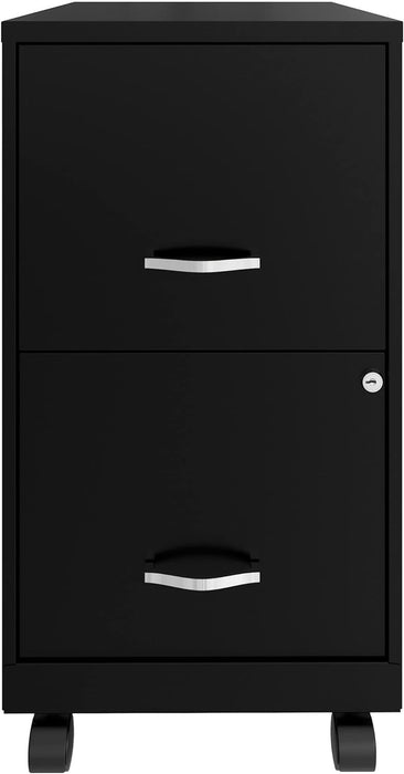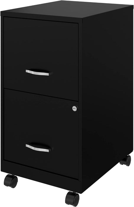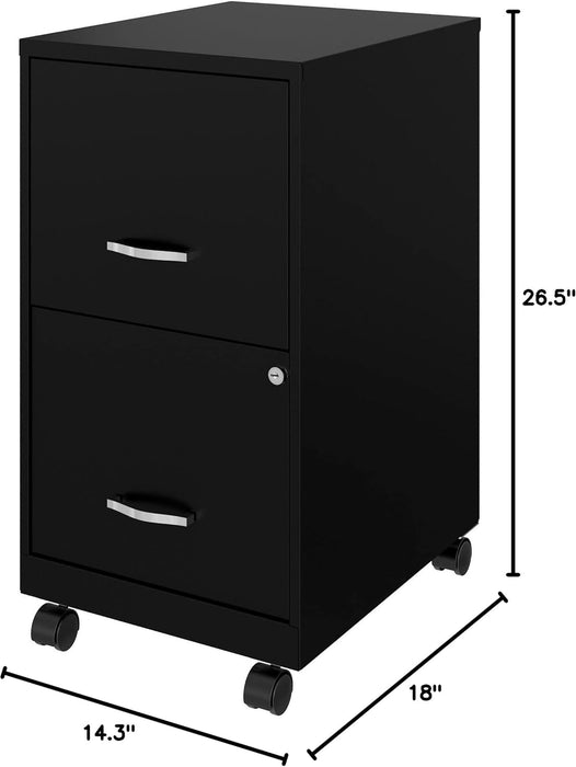 Two-Drawer Mobile File Cabinet Black With Locking Drawers 14.2 X 18 X 26.5 Inches Steel
