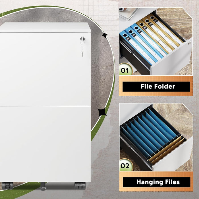 Designed for home office use, this metal filing cabinet combines reliable security, flexibility, and everyday practicality. It fits neatly beside your desk, doubles as a compact printer stand, and moves with ease to wherever you work best.