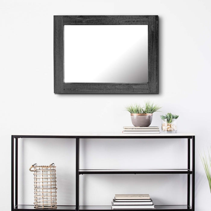 24x18 Inch Rectangle Black Wood Frame Wall Mirror With Attached Hanging Brackets Rustic Decor