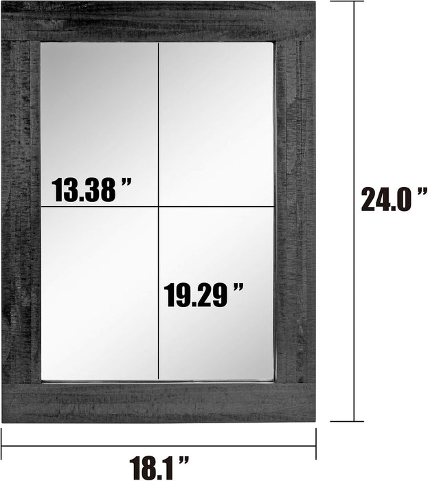 Refresh your space with a 24" x 18" rectangle wall mirror that blends rustic charm with crystal-clear reflection. The black wood frame delivers vintage appeal while remaining a versatile accent for bathrooms, bedrooms, living rooms, hallways, and entryways.