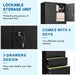 - Upper storage cabinet with secure locking—three-point door lock on the upper unit protects privacy; anti-tip design helps prevent accidents and keeps curious hands safe.
