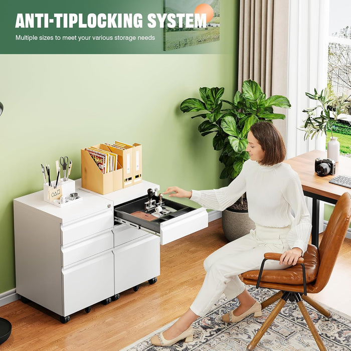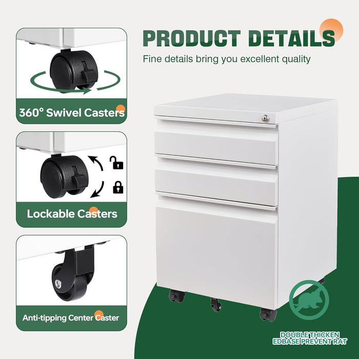 3 Drawer Mobile File Cabinet With Lock Under Desk Filing Cabinet For Home Office