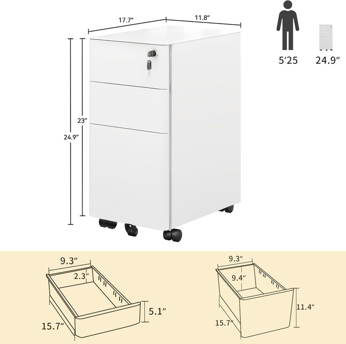 Transform your workspace with a compact 3-drawer vertical file cabinet that moves with you, keeping paperwork secure and organized. Pre-assembled, lockable, and slim enough for tight spaces, it’s the portable storage solution for A4, Letter, and Legal documents.