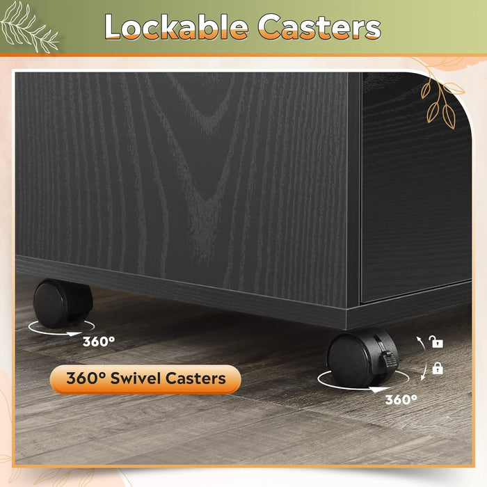 Keep your office on track with the 3-Drawer Wood File Cabinet with Lock—a durable, mobile lateral filing cabinet designed to tidy papers, supplies, and equipment while protecting what matters most. Finished in black and sized at 31.3" W x 15.7" D x 24.7" H, it fits neatly beside desks or under them. Built from sturdy engineered wood with a waterproof, scratch-resistant finish, this cabinet is made to last and stay looking great through daily use.