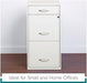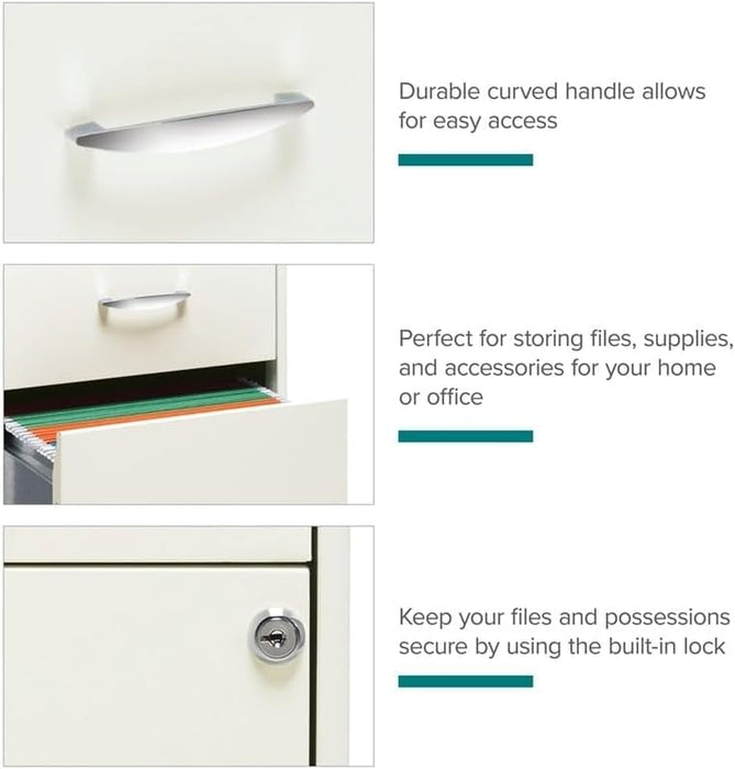 • Three drawers — two file drawers for letter-size hanging folders and a top storage drawer for small office essentials.