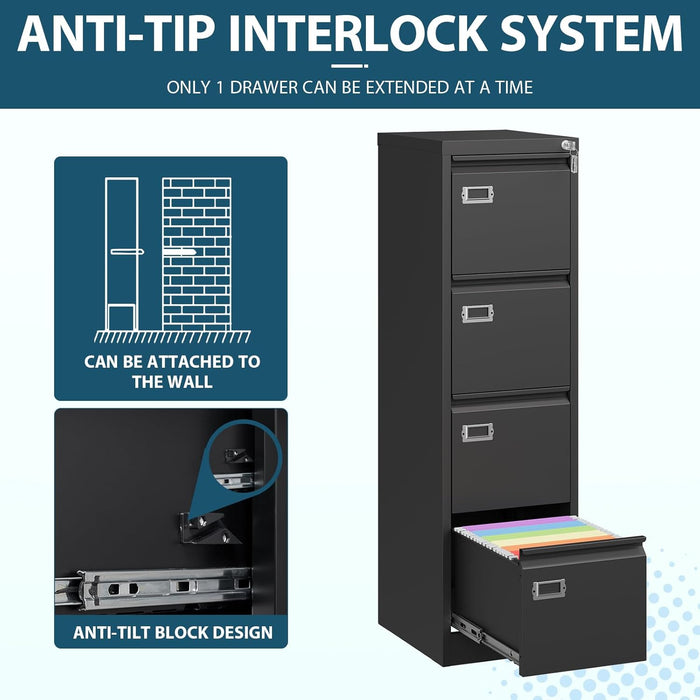 The four-drawer file cabinet is designed to fit Letter, Legal, and A4 file sizes, making it a versatile addition to any home office or small business workspace. Its minimalist, professional silhouette blends with most office decors while helping you reclaim desk space and improve document discipline.