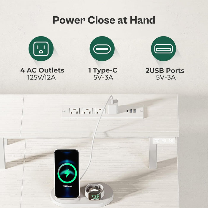• Power outlets at your fingertips: On the monitor stand, access 4 AC outlets, 2 USB ports, and 1 Type-C port to keep monitors, laptops, consoles, and peripherals charged and ready.