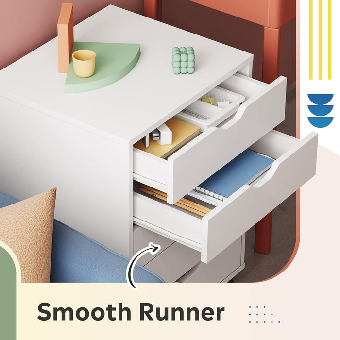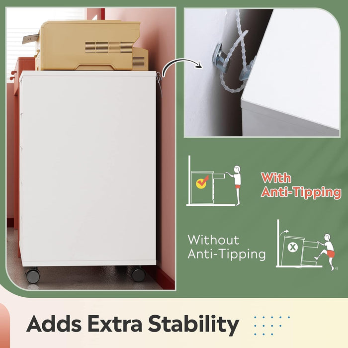 Transform clutter into calm with a versatile 5-drawer chest on wheels that fits any room and color scheme. This white wood storage file cabinet keeps clothes, documents, and essentials neatly organized, so you can enjoy a clean, productive space every day.