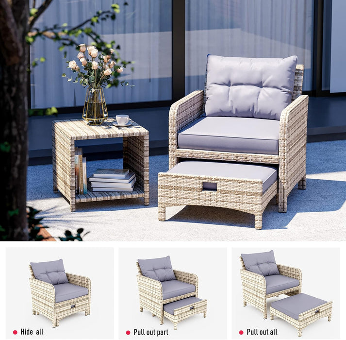 Imagine transforming your outdoor space into a cozy retreat where relaxation meets style. This 5-piece outdoor wicker chair set with ottoman offers the perfect blend of comfort and durability, making it ideal for enjoying conversations on your patio, balcony, or garden.