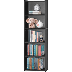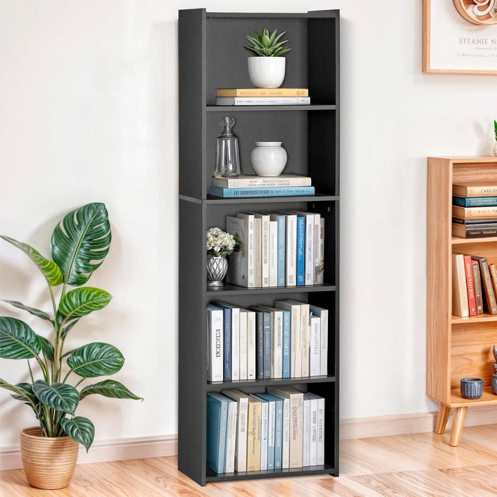 5 Tier Wood Bookcase Freestanding Black Home Office