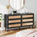 6 Drawer Dresser With Rattan Accents In Black And Natural
