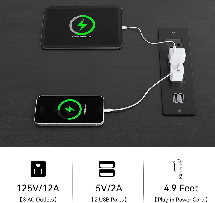 - Integrated charging hub and built-in power outlet for easy charging of phones, headsets, and gaming devices—tidy cords, ready to use.