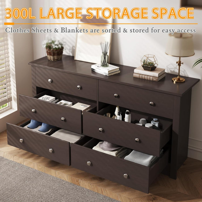 - Multi-purpose 6-drawer dresser: six roomy drawers offer organized storage for clothes, linens, or media supplies, kept quiet with smooth metal slides.