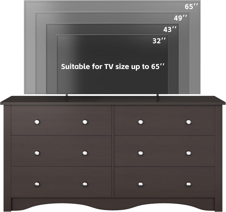 Transform clutter into calm with a versatile 6-drawer dresser that also doubles as a TV stand for up to 65 inches. This stylish wood dresser brings organized storage and modern charm to any room, quietly slimming clutter while amplifying your living space.