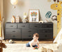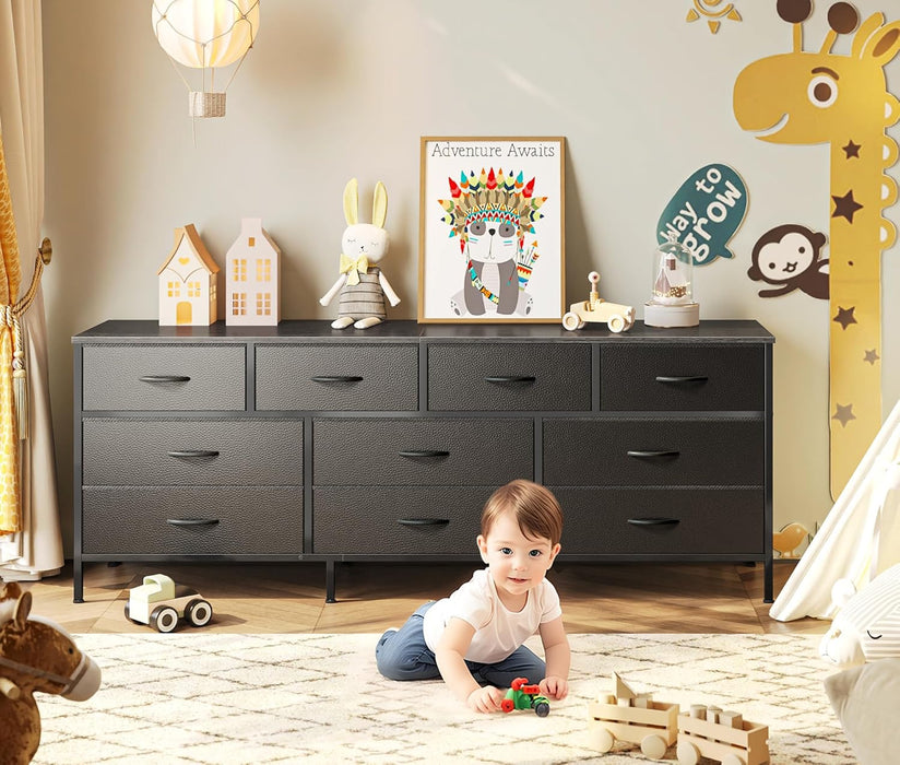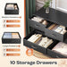 63 Inch TV Stand Dresser With 10 Fabric Drawers Black