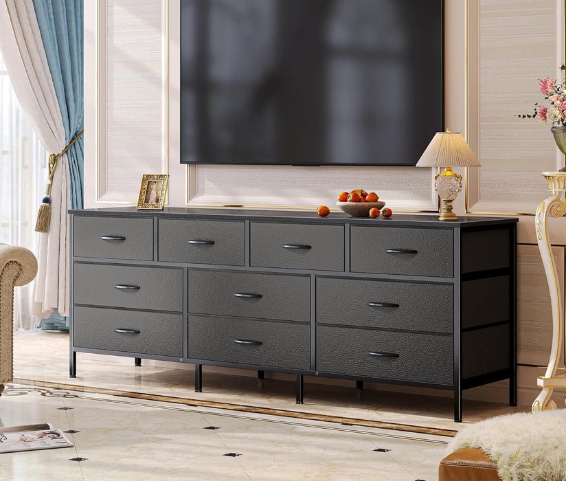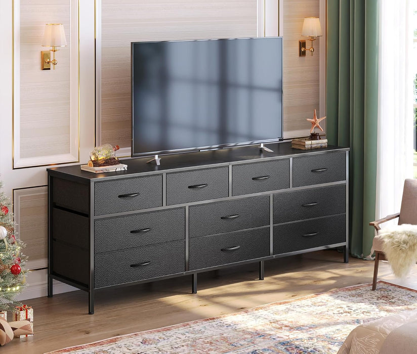 Transform clutter into calm with a 63 inch TV stand dresser that blends robust storage with a sleek, TV-ready top. This wide dresser is designed to support a TV up to 70 inches on a solid wooden surface, while keeping your wardrobe neatly organized in 10 fabric drawers.