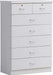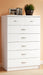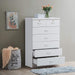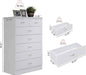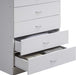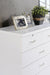 Designed to fit a range of decors, this white-finish dresser adds a clean, contemporary touch to any bedroom. It features smooth metal drawer glides and reinforced supports under each drawer, so everyday use stays quiet and reliable. The expansive top surface provides space for photo frames, an antique clock, or a vase, making it a practical centerpiece as well as a storage solution.
