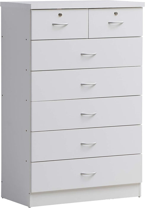 Transform clutter into calm with a 7-drawer wood dresser—31.5" wide, built for durable organization and modern bedroom style. Two lockable top drawers keep valuables secure, while the sturdy engineered wood frame offers lasting support.