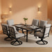 Elevate every outdoor meal with a 7-Piece Patio Dining Set for 6—360° swivel chairs, plush olefin cushions, and a sleek black rectangular faux woodgrain table with a built-in umbrella hole. Thoughtfully designed for comfort, durability, and effortless entertaining, this set turns your patio into a warm, welcoming dining space all year round.