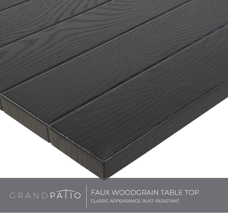 - 1 black rectangular faux woodgrain dining table with a natural hand-brushed look and an umbrella hole to accommodate standard umbrellas (1.5" diameter).