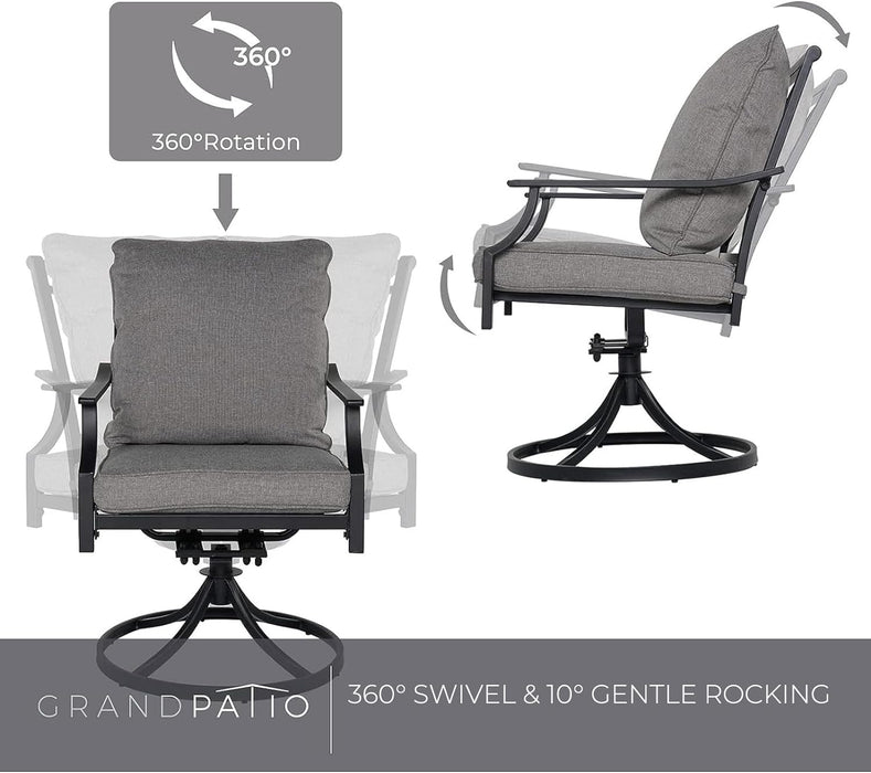 - 6 swivel chairs with 360° rotation and a gentle 15° rocking motion for easy getting in and out and relaxed lounging.