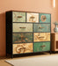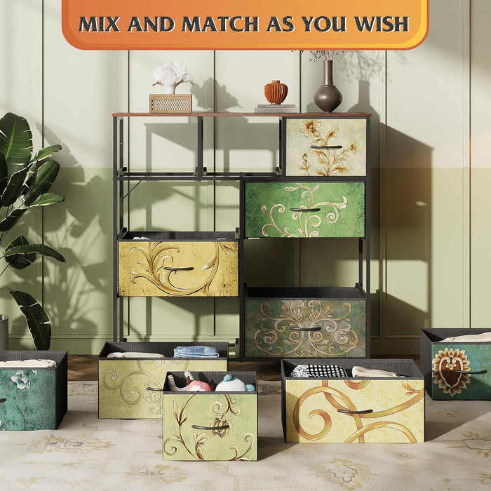 9 Drawer Dresser With Fabric Bins Floral Pattern Wood Top