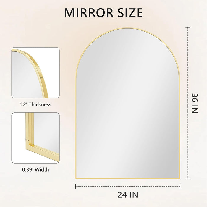 Gold Arched Wall Mirror 24x36 For Bathroom Vanity Decor
