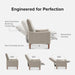 - 3 fixed reclining positions: 105°, 120°, and 140° with smooth push-back operation for effortless adjustability.