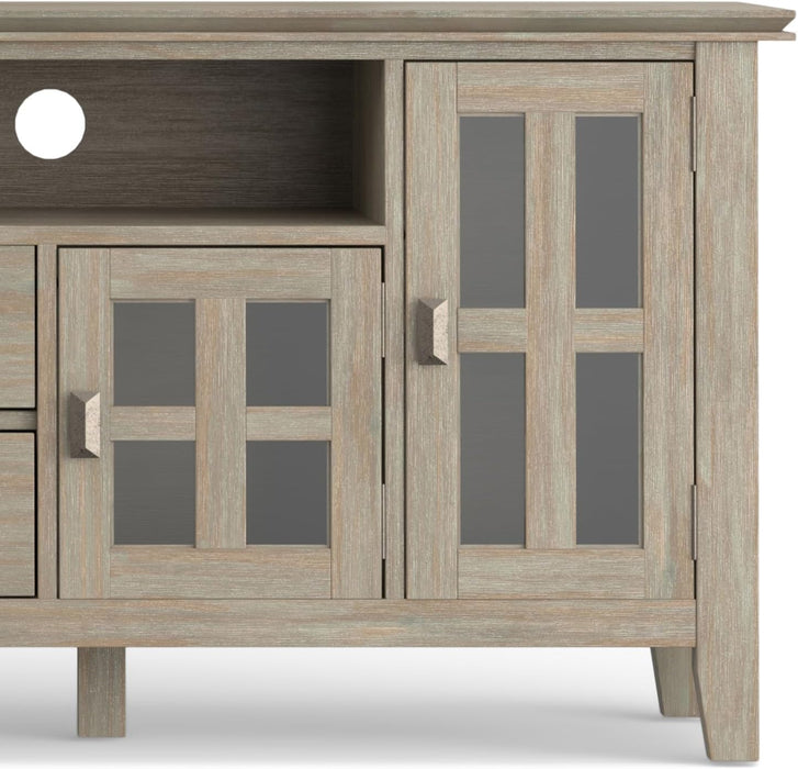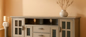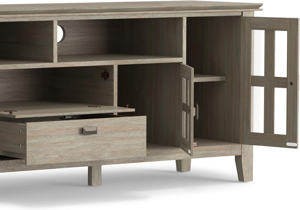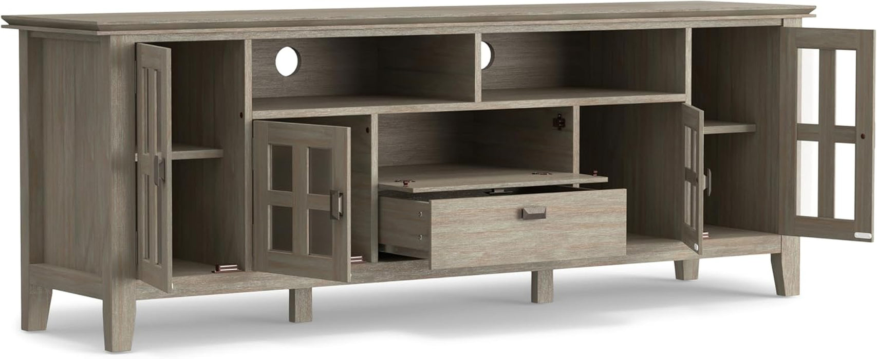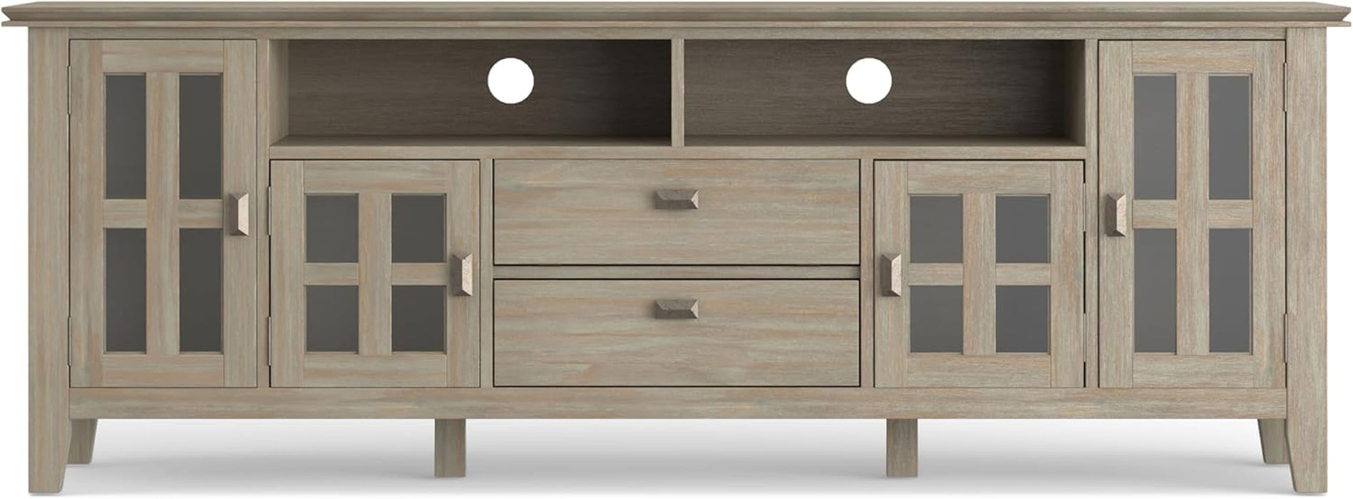 Solid Wood TV Stand 72 Inch Wide Distressed Grey Finish